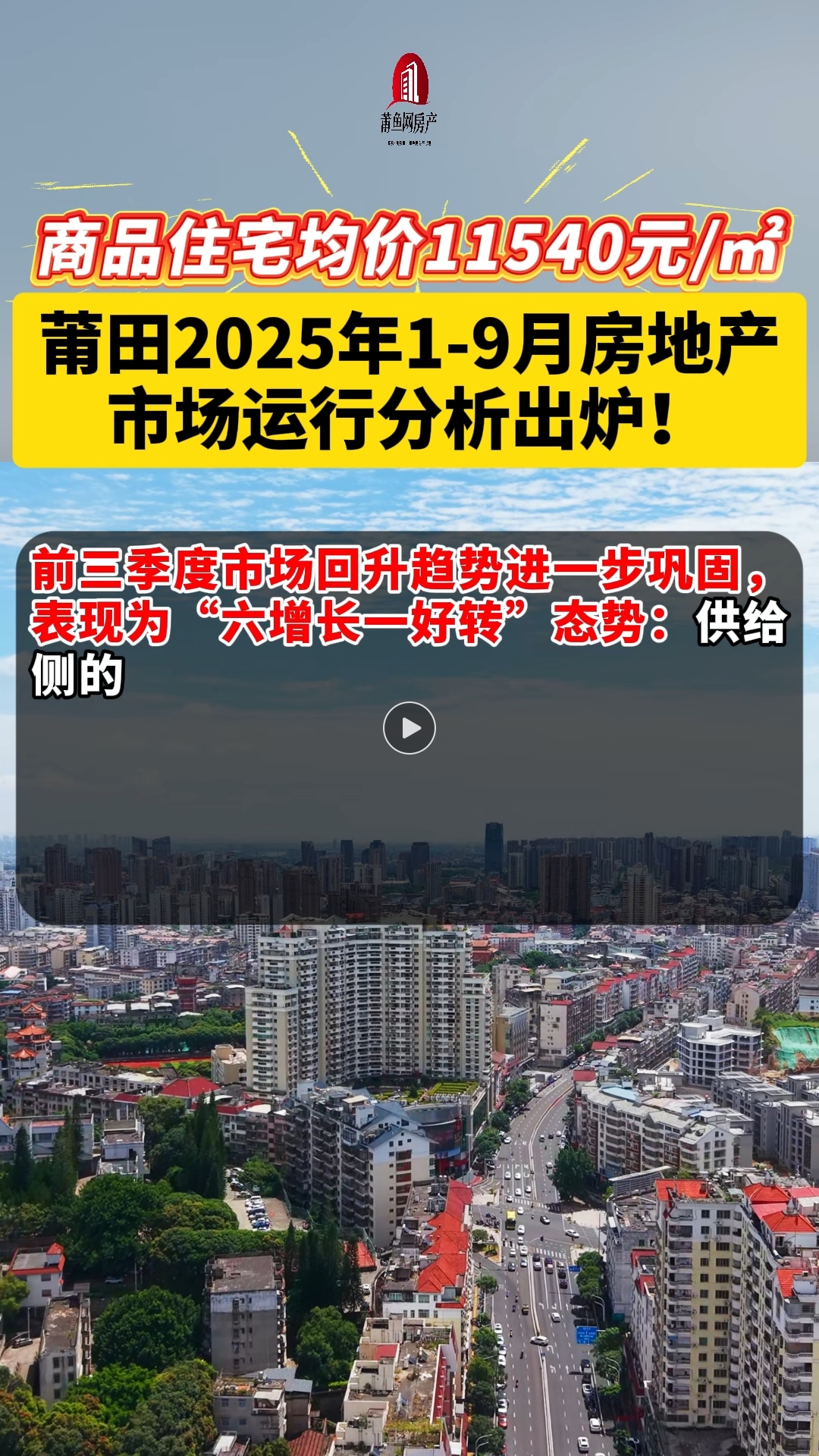 商品住宅均价11540元/㎡!莆田2025年1-9月房地产市场运行分析出炉!