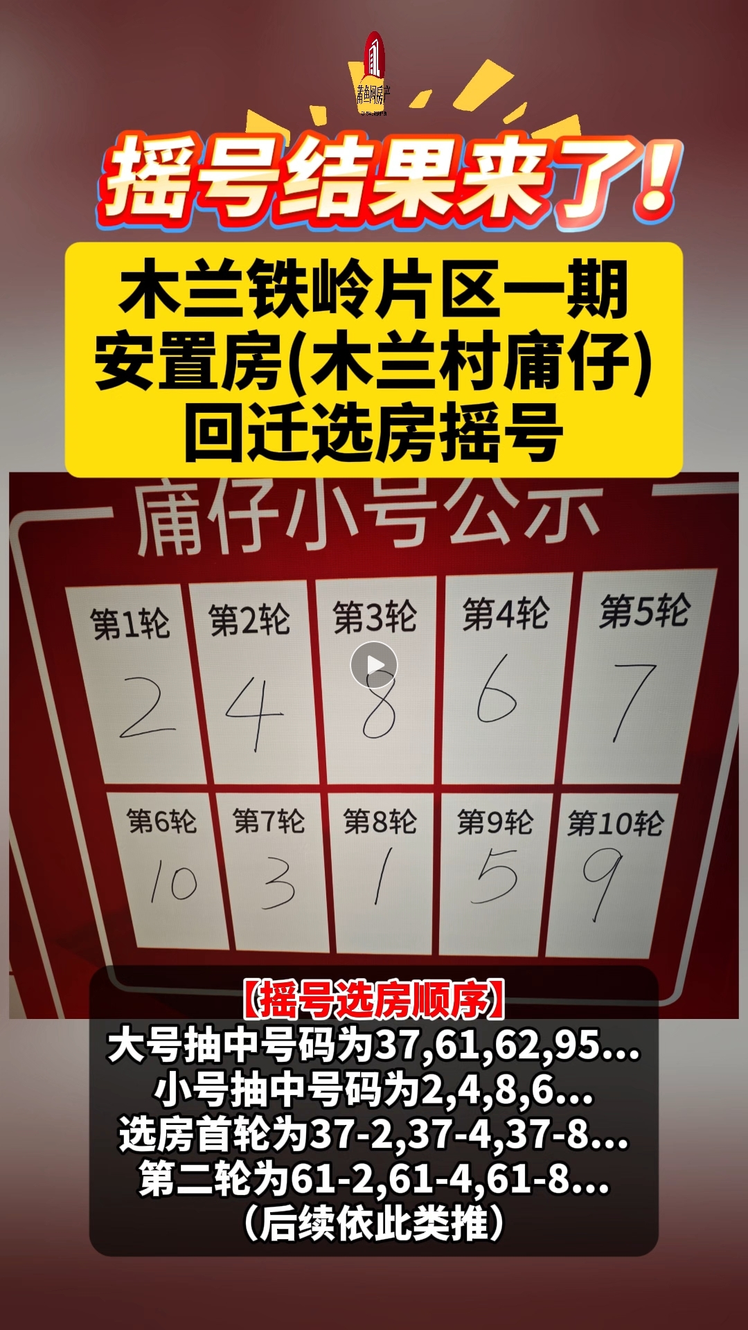 摇号结果出炉!木兰铁岭片区一期安置房(木兰村庯仔)回迁选房摇号!